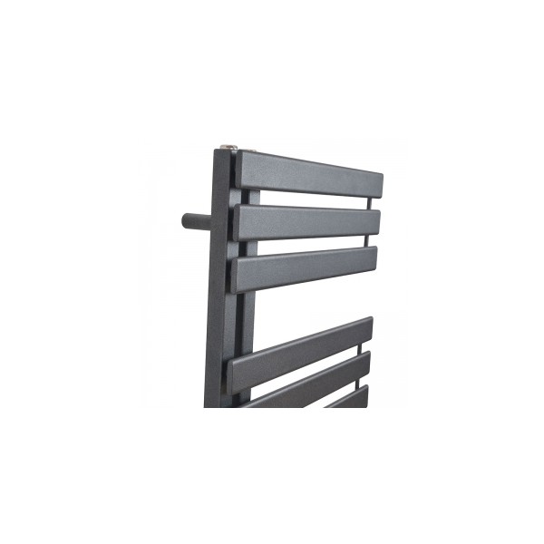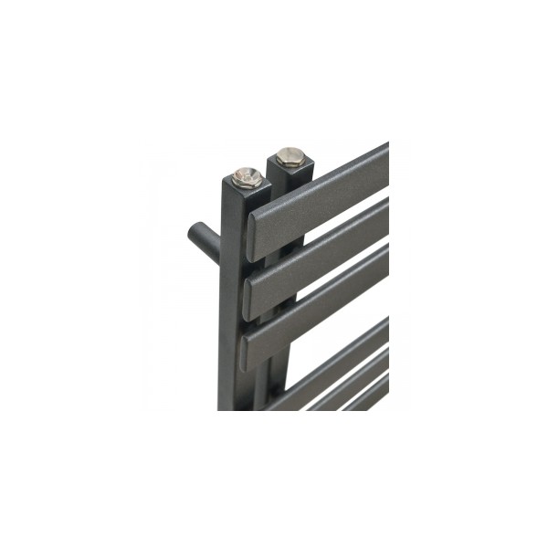 Grzejnik składa się na partie szerszych profili grzewczych w układzie poziomym, z zachowaniem paru większych odstępów pomiędzy nimi. Aspekt wizualny idzie w parze z funkcjonalnością, taka budowa umożliwia komfortowe rozwieszanie i suszenie ręczników oraz innych tekstyliów. Dla wzmocnienia walorów ozdobnych, grzejnik został zaprojektowany z pionowymi kolektorami o przekroju kwadratowym, umieszczonymi po jednej stronie obok siebie. Warty wspomnienia jest fakt, iż taka budowa umożliwia montaż lewostronny bądź prawostronny. Ciekawym akcentem jest ponadto subtelna linia pionowa, znajdująca się po przeciwnej stronie kolektorów i ozdobnie łącząca partie profili grzewczych.