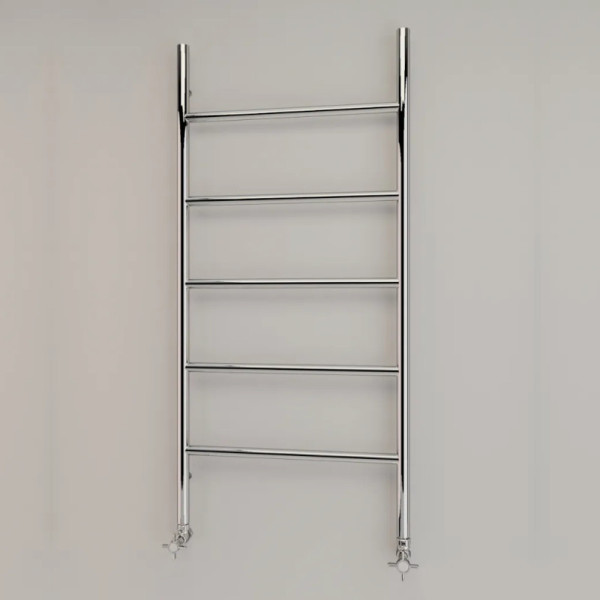Za grzejnikiem Minimal stoi prosta filozofia grzejników drabinkowych, mamy tu do czynienia z dwoma pionowymi kolektorami i poziomymi profilami grzewczymi które mogą posłużyć jako suszarka do ręczników. I to wszystko co posiada Imers Minimal, wszystko co najważniejsze o świetnej wydajności w smukłej formie. Dostępny w dobrze znanych pokryciach zwiększających jego odporność takich jak chrom, miedz, stara miedz, mosiądz, stary mosiądz, nikiel szlifowany i satyna. Podłączany od dołu po szerokości grzejnika.